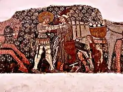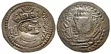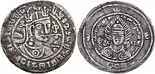 Кидариты или Кидара-хуны,[68] племена и династия, которая правила Бактрией, Южным Согдом и Южной Азией в IV—V вв. Кидариты принадлежали к конгломерату племён известных как хуны в Индии и Европе.[69] В V веке византийские историки называли их «кидаритские хунны или хунны, которые кидариты».[70][71]