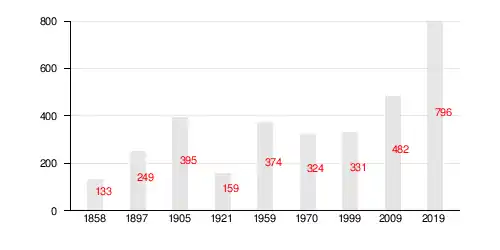На 1 января 2018 года насчитывалось 747 жителей в 271 хозяйстве, из них 190 младше трудоспособного возраста, 417 — в трудоспособном возрасте и 140 — старше трудоспособного возраста[4].