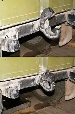 На грузовых автомобилях и автомобилях повышенной проходимости (УАЗ-469, УАЗ-452) до недавнего времени в качестве тягово-сцепного устройства применялся буксирный крюк, который удерживал дышло прицепа. Главным недостатком такой конструкции являлось наличие существенного люфта между дышлом и крюком, что приводило к ударным нагрузкам при трогании/торможении. В свою очередь, эти удары быстро выводили буксирный крюк из строя — вплоть до произвольной расцепки автопоезда при движении. Кроме того, весьма затруднительным был процесс сцепки, когда водителю необходимо было с большой точностью подать тягач назад так, чтобы буксирный крюк оказался точно напротив дышла прицепа. Для предотвращения самопроизвольного раскрытия буксирного крюка предусмотрена установка шплинта.