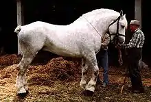 Брабансон, першерон, булонская лошадь, бретонская, шайр, клейдесдаль, арденская лошадь и другие.