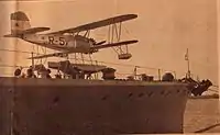 Что касается самих гидросамолётов, то первоначально крейсера несли по два поплавковых биплана Vought V-65F Corsair американского производства[17]. В 1937 году их заменили на закупленные в США самолёты-амфибии Grumman JF Duck[28]. Однако эти машины не проходили в люки ангара и должны были постоянно размещаться на катапульте. Формально крейсера могли нести по два таких самолёта, но фактически имели лишь по одному.
