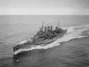 В состав силовой установки входили двенадцать котлов Ярроу (давление 21 кГ/см²), выработанный ими пар поступал к 4-м турбинам Парсонса с зубчатой передачей.