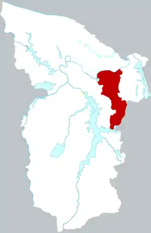 Район делится на 9 уличных комитетов, 4 посёлка и 1 волость.