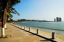Побережье залива Санья является самой популярной курортной зоной города. Вдоль 22-километрового песчаного пляжа расположены многочисленные отели и курортные комплексы, в том числе международных сетей Four Points by Sheraton, Pullman, Howard Johnson's, Wyndham, Ramada Plaza и Holiday Inn, а также несколько первоклассных гольф-клубов.