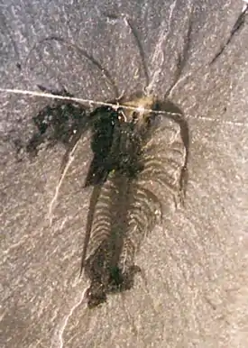 «Тёмное пятно» — особенность, часто наблюдаемая на окаменелостях животных из сланцев Бёрджес. Видимо, это следы жидкости, вытекавшей из тела организма после захоронения.