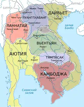 Влияние Сиама и Вьетнама усилилось в XVII—XVIII веках, когда обе державы поочерёдно требовали подчинения и дани от камбоджийского монарха[22], роль которого в этот период упала до состояния вассала. К началу XIX века Камбоджа оказалась под совместным сюзеренитетом обеих стран, утратив свою независимость. Британский агент Джон Кроуфурд писал: