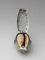 Серебряная тёрка для мускатного ореха с корпусом-приёмником из ракушки моллюска