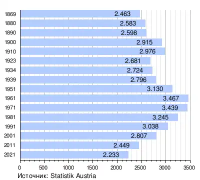 - Население на 1 января 2021 г. по населенным пунктам (территориальный статус на 1 января 2021 г.) (нем.). Статистическое управление Австрии (1 января 2020). Дата обращения: 23 февраля 2022.