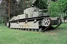 ![]() Экранированный Т-28 (Т-28Э), использовавшийся Финской армией, в экспозиции танкового музея в г. Парола (Финляндия) | |