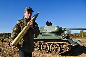 ![]() Т-34-85 на параде в День Победы в Москве 9 мая 2018 | |