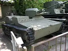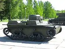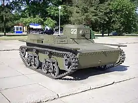 Т-38 — советский малый плавающий танк (в документах иногда также именуется танкеткой[1]). Эта боевая машина была разработана в 1936 году на основе танка Т-37А и по существу являлась его улучшенной версией. В ходе серийного производства с 1936 по 1939 год было выпущено 1340 Т-38[2]. В Рабоче-крестьянской Красной армии они предназначались для задач связи, разведки и боевого охранения частей на марше, а также непосредственной поддержки пехоты на поле боя. Т-38 массово использовались во время Польского похода РККА 1939 года, советско-финской войны 1939—1940 годов и в боях начального периода Великой Отечественной войны. Единичные уцелевшие танки этого типа воевали на фронте вплоть до 1944 года включительно, а в тыловых учебных частях и подразделениях они применялись вплоть до окончания войны[1].