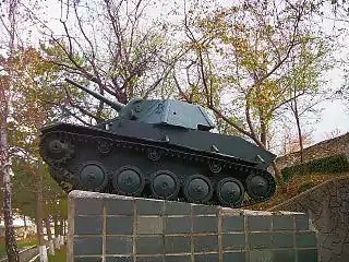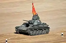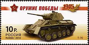 Т-70 — советский лёгкий танк периода Второй мировой войны. Разработан в октябре — ноябре 1941 года на Горьковском автомобильном заводе (ГАЗ) под руководством Николая Александровича Астрова, ведущего разработчика всей отечественной линейки лёгких танков того периода. В январе 1942 года Т-70 был принят на вооружение Рабоче-крестьянской Красной армии и серийно выпускался на нескольких машиностроительных заводах. Производство Т-70 продолжалось до октября 1943 года, когда, по результатам боевых действий лета этого года и большой надобности РККА в самоходно-артиллерийских установках СУ-76 на его базе, было принято решение о прекращении его серийного выпуска. Всего был выпущен 8231[1][2] танк этого типа.