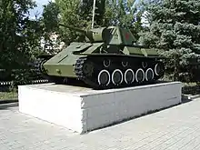 - Калач-на-Дону, Волгоградская область: установлен в городе 8 декабря 1942 года по приказу командира 152 тбат 69 тбр, капитана Гладченко. Помпотех батальона Бондаренко выделил по просьбе калачевцев для памятника машину из числа не подлежавших восстановлению. Считается, что это первый в истории Великой Отечественной войны памятник-танк.