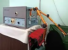 Ранее во времена СССР, при проведении УВЧ-терапии использовались аппараты УВЧ-30, УВЧ-62 и УВЧ-66. Аппараты УВЧ-30 и УВЧ-66 по-прежнему применяются в физиотерапии, наряду с новыми аппаратами УВЧ-70 и УВЧ-80.