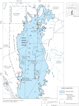 Полигон «Уайт-Сэндс» является крупнейшей по площади военной базой США. Его площадь составляет 8300 км² и включает территорию пяти южных округов штата Нью-Мексико: