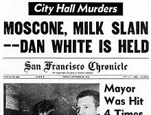 Мэр Сан-Франциско Джордж Москоне и глава наблюдательного совета Сан-Франциско Харви Милк были застрелены в мэрии Сан-Франциско бывшей главой наблюдательного совета Дэном Уайтом 27 ноября 1978 года. Уайт был зол на то, что Москоне отказался повторно назначить его на место в Наблюдательном совете, из которого он только что ушел в отставку, и что Милк сильно лоббировал свое повторное назначение. Эти события помогли привлечь внимание страны к тогдашнему президенту Совета Дайэнн Файнстайн, которая стала первой женщиной-мэром Сан-Франциско и, в конечном итоге, сенатором США от Калифорнии.