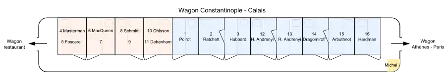 Из сирийского Алеппо отправляется экспресс в Стамбул. Одним из пассажиров экспресса оказывается знаменитый частный детектив Эркюль Пуаро, выполнивший деликатное расследование по просьбе французской военной администрации. В Стамбуле Пуаро снимает номер в отеле, перед тем как проследовать обратно в Европу. В городе он обращает внимание на пожилого американского бизнесмена Сэмюэла Эдуарда Рэтчетта, которого сопровождает секретарь и переводчик Гектор Маккуин. Пуаро получает телеграмму о том, что ему нужно срочно прибыть в Лондон. Хотя выясняется, что несмотря на зимний сезон все места в поезде неожиданно заняты, Пуаро всё же получает место во втором классе благодаря вмешательству своего друга и соотечественника месье Бука, директора железной дороги Международной компании спальных вагонов (фр. Compagnie Internationale des Wagons-Lits), также едущего на поезде в Европу. В вагоне соседом Пуаро по купе оказывается мистер Маккуин, сопровождающий в поездке своего начальника.