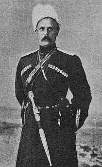 С началом Первой мировой войны, 12 августа 1914 года поступил в свой полк с назначением младшим офицером сотни. Затем сам командовал сотней. За боевые отличия был награждён тремя орденами. В июне 1916 года был отчислен из армии в связи с операцией по поводу грыжи.