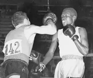 Фрэнк Кисекка (справа) в бою против итальянца Паоло Курчетти, 25 августа 1960