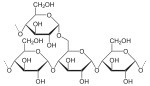 О́лигосахари́ды (от греч. ὀλίγος — немногий) — углеводы, молекулы которых синтезированы из 2—10 остатков моносахаридов, соединённых гликозидными связями. Соответственно различают: дисахариды, трисахариды и так далее[4]. Олигосахариды, состоящие из одинаковых моносахаридных остатков, называют гомополисахаридами, а из разных — гетерополисахаридами. Наиболее распространены среди олигосахаридов дисахариды.