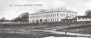 Духовное училище было открыто в Угличе в 1776 году первоначально располагалось в деревянных келейных корпусах упразднённого в 1764 году Воскресенского монастыря.
