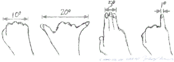 - Сжатый кулак покрывает около 10º