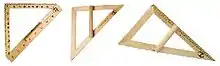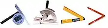 - угломеры плотника, столяра — предназначены для выполнения плотницких и столярных работ (могут быть с регулируемыми или фиксированными углами — угольник, треугольник, наугольник, ерунок).