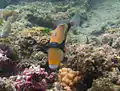 Территориальный вид. Питается водорослями, детритом, моллюсками, ракообразными, червями, иглокожими, губками, фораминиферами, мелкими рыбами, икрой.