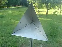 Уголковый отражатель, ретрорефле́ктор — устройство в виде прямоугольного тетраэдра со взаимно перпендикулярными отражающими плоскостями: падающий на уголковый отражатель луч отражается строго в обратном направлении[1].