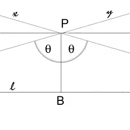 Угол параллельности θ, прямые и асимптотически параллельны к прямой .