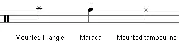- Заметно мягче, чем остальные ноты: () (головка ноты в скобках)