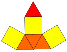 Составлена из 7 граней: 4 правильных треугольников и 3 квадратов. Каждая квадратная грань окружена двумя квадратными и двумя треугольными; среди треугольных граней 1 окружена тремя квадратными, остальные 3 — квадратной и двумя треугольными.