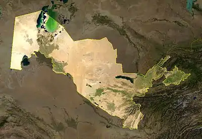 Сопредельные государства: на востоке — Киргизия; на северо-востоке, севере и северо-западе — Казахстан; на юго-западе и юге — Туркмения; на юге — Афганистан и на юго-востоке — Таджикистан.