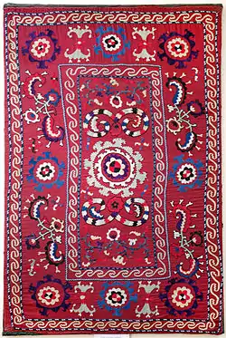 Узбекские ковры обычно несут декоративную функцию: очень часто их стелют на полу или вешают на стену. Также их могут расстелить на айване в тени деревьев.