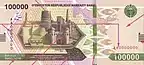 100 000 | светло-коричневый | лицевая сторона — памятник Мирзо Улугбеку, оборотная сторона — обсерватория Улугбека |