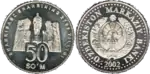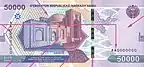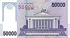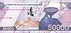 50 000 | фиолетовый | лицевая сторона — монумент «Эзгулик аркаси» на площади Мустакиллик в Ташкенте, оборотная сторона — дворец Форумов в Ташкенте |