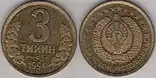 3 тийина | 20 | 1,3 | 2,7 | рубчатый | 1994 | |