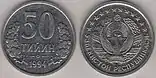 50 тийинов | 23,9 | 1,6 | 4,75 | гладкий с надписью Эллик тийин |