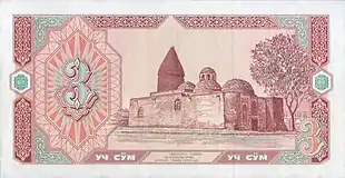 лицевая сторона — мавзолей Аль-Хаким ат-Тирмизи (на купюре ошибочно указан, как
