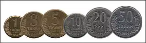 5 тийинов | 21,5 | 1,4 | 3,4 | 1994 | ||