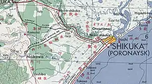 Во времена Японской оккупации Сахалина на Сахалине активно велось строительство железных дорог разной колеи. Строительство линии Найро (Гастелло) — Найкава (Тихменево) — Сикука (Поронайск) и до карьеров в Леонидово началось еще до 1931 года. Общая протяженность этой линии составляла 45 км (до 1945 года). Линия на Леонидово проходила вдоль реки, а не по современной трассе Сахалинского региона ДВЖД.