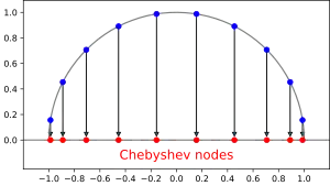 В математике под узлами Чебышёва понимают корни многочлена Чебышёва первого рода. Они часто используются в качестве узлов при полиномиальной интерполяции, так как позволяют снизить влияние феномена Рунге.
