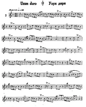 Ноты музыки танца «Узундара» из сборника «Азербайджанские народные песни и танцы» (Баку, 2014)