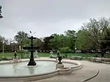 В 1908 году датско-американский ландшафтный дизайнер Йенс Йенсен, суперинтендант[уточнить] системы Вест-Парка, убрал чугунный фонтан, заменив его просто струёй воды, и превратил фонтан в детский бассейн; также он построил беседки и посадил дополнительные деревья и кустарники[2].