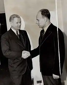 ![]() Л. Д. Уилгресс (слева) и посол СССР в Канаде Ф. Т. Гусев. 1943 год | |