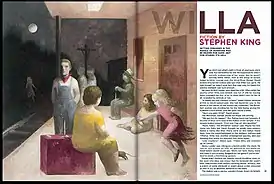 ![]() Иллюстрация Жерара Дюбуи (Gérard Dubois) к первой публикации рассказа Стивена Кинга «Уилла» (разворот журнала «Playboy», № 12/2006, стр. 98-99) [1] | |