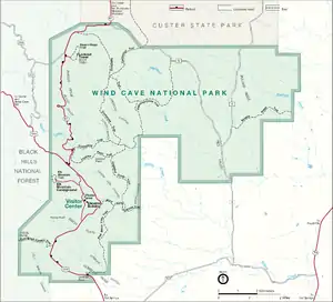 Пещера Уинд известна с 1881 года. С февраля 1892 открыта для посещений[2]. 9 января 1903 года пещера и территория площадью 136 км² получили статус национального парка.[3] В 2013 году парк посетило 516 тыс. туристов.[4]