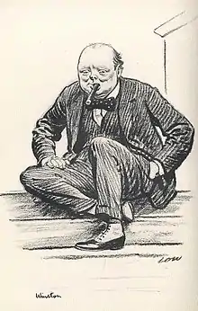 В 1931 году Черчилль написал статью «Карикатура и карикатуристы» (англ. «Cartoons and Cartoonists»). Она вошла в книгу политика «Мысли и приключения». В этой книге он вспоминал о юношеском увлечении политической карикатурой и отмечал среди художников-карикатуристов Джона Тенниела, получившего известность благодаря иллюстрациям к сказкам Льюиса Кэролла, Фрэнсиса Карратерса-Гоулда, Перси Хаттона Фирона по прозвищу «Пой» и Макса Бирбома (также известно, что его восхищение вызывали карикатуры Дэвида Лоу[89])[90].