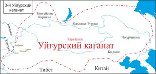 Уйгурский каганат, Уйгуро-Орхонский каганат (Государство Тогуз-Огузов) — государственное образование VIII—IX веков н. э., пришедшее на смену Восточно-тюркскому каганату. Ибн Хордадбех упоминает о землях уйгуров (токуз-огузов): «Их область самая большая из тюркских стран, они граничат с Китаем, Тибетом и карлуками»[4].