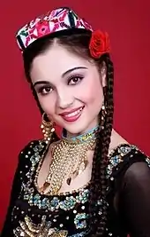Крупным этническим компонентом, вошедшим в состав уйгуров, стали могулы — конгломерат тюркских и монгольских племён[45]. Монгольское происхождение, как полагают исследователи, имеет одна из этнографических групп уйгуров, известные как доланы[46].
